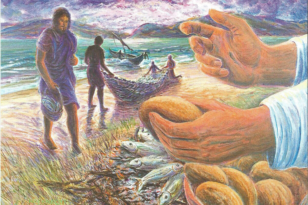 Breakfast is prepared for the disciples by Jesus after His resurrection. Jesus, the Bread of Life, knows both our physical and spiritual needs. Only He can satisfy all of our hunger. Source: John 21:12