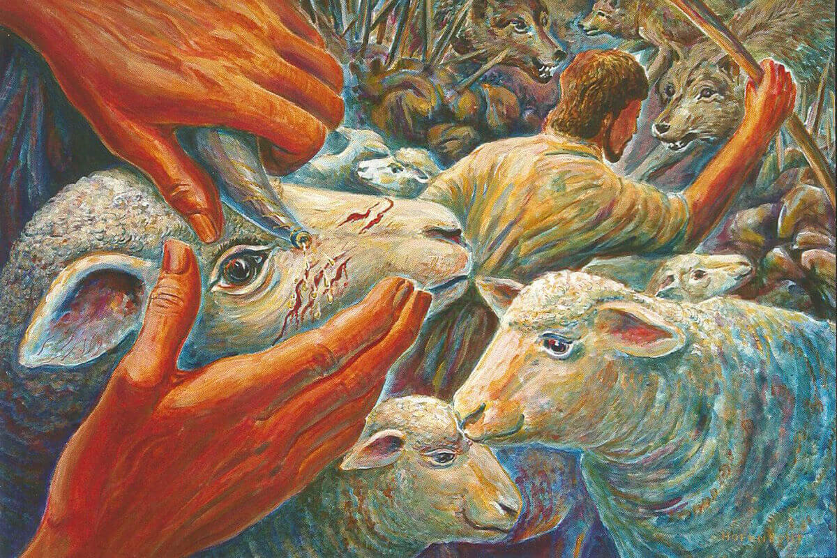 The Shepherd is near to the sheep, pouring oil on the wounded and fending off dangerous enemies.